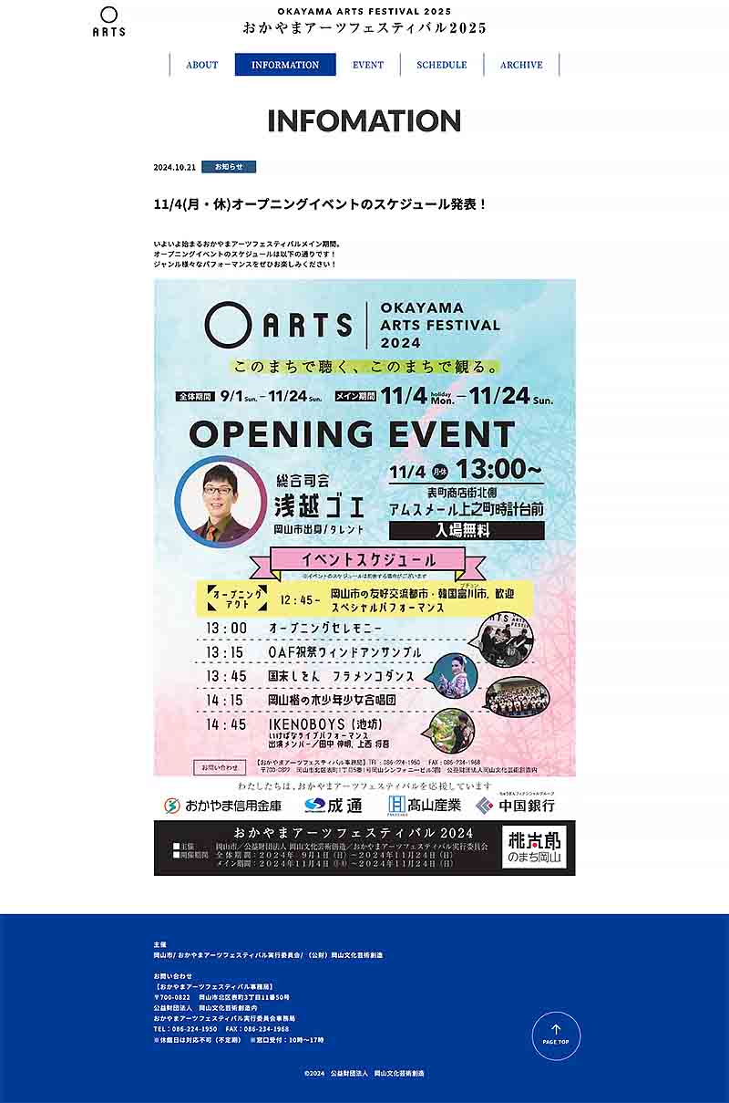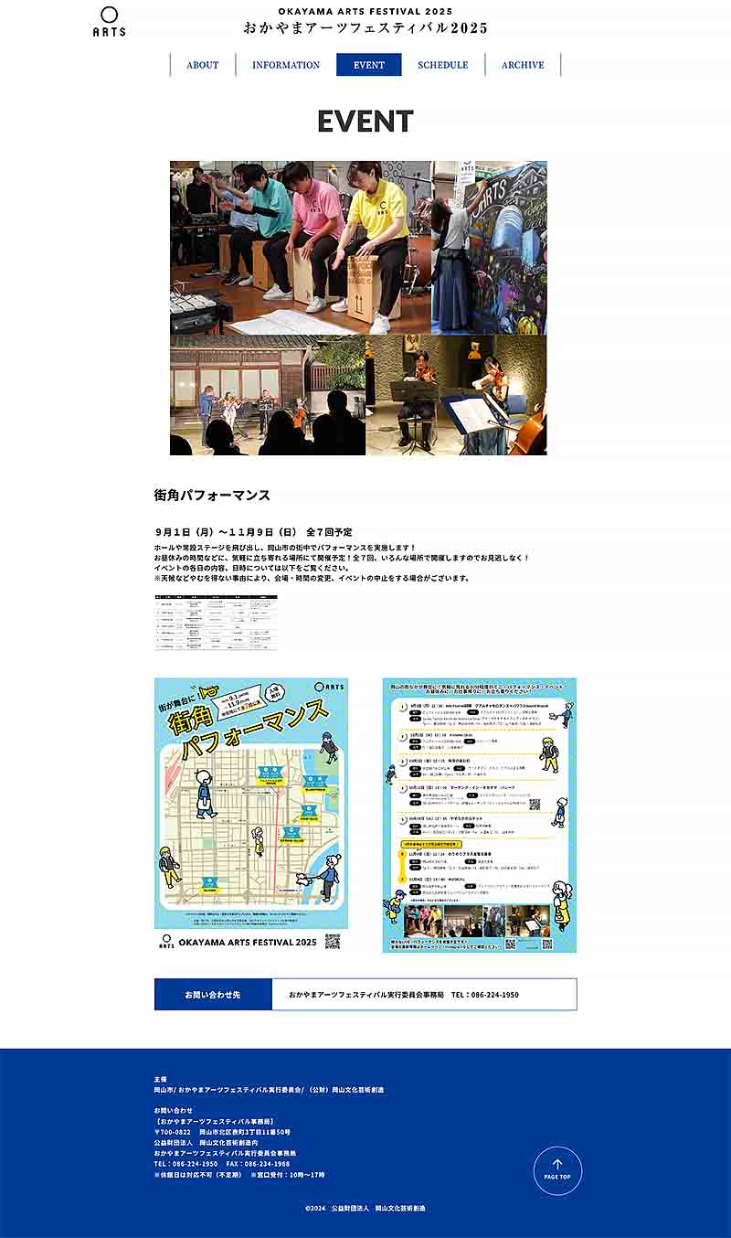文化芸術祭典「おかやまアーツフェスティバル2025」ホームページ画面