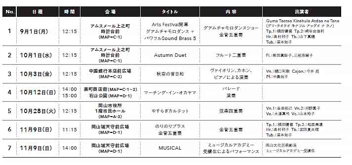 § 内部リンク 2024/09/01 街角パフォーマンス おかやまアーツフェスティバル2024 岡山市 随時更新9/21マチノブンカサイ2024