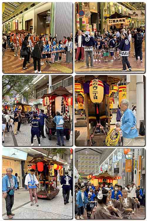 結果,だんじりは七つの町内が集合しました。そして,表町商店街を毎年だんじり巡行を行う町内会,それから住宅街で毎年だんじり巡行を行う町内会,それぞれだんじりは街を練りまわります。
