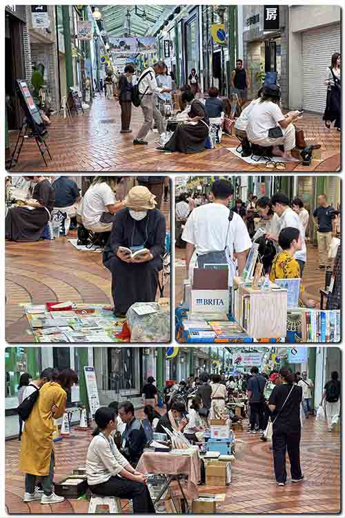 表町商店街の中之町・下之町・榮町では,「表町ブックストリート」が行われています。13日限定,午前11時から午後3時まで,商店街に中古本屋さん(県外から出店もあり)が勢揃い。絵本や文学本や全集とか趣味の本など,通りがかりの市民のみなさんが好きな本を探す様子が見えます。
