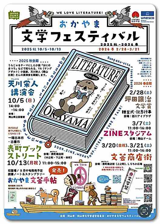 202510月から 20263月まで「おかやま文学フェスティバル2025秋~2026春」(主催 岡山市・岡山市文学賞運営委員会・おかやま文学フェスティバル実行委員会)を開催しています。