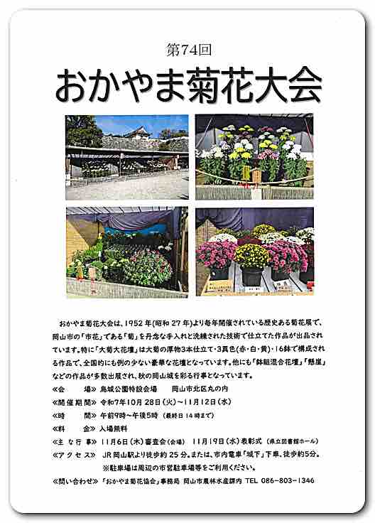 • 主催:岡山市・おかやま菊花協会 電話 086-803-1346
