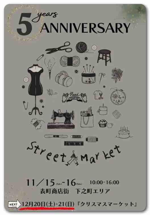 物販イベントが表町商店街の下之町で行われる模様です。中之町では音楽イベントも行われる模様です。