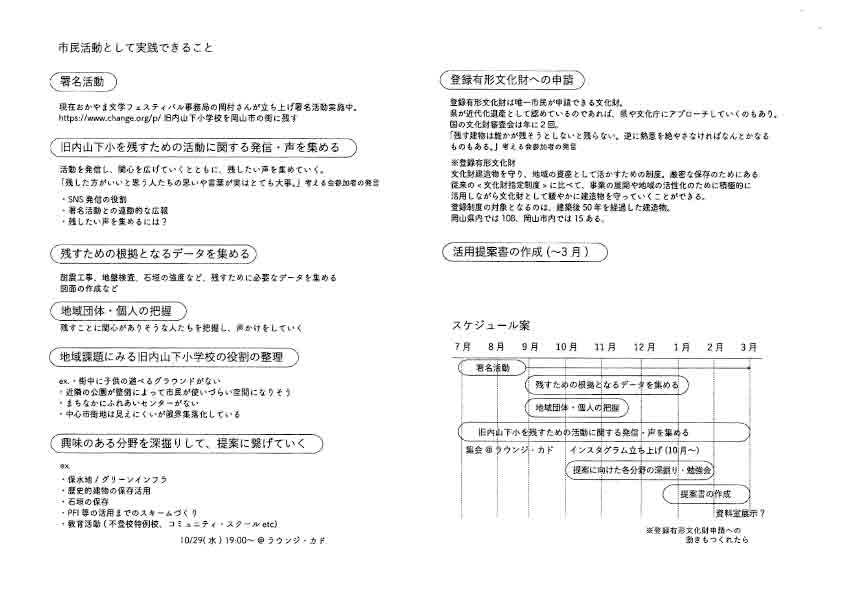 §内部リンク 旧内山下小学校を岡山市の街に残す(署名活動は2ページを開いてください)- PDFファイルのダウンロードURLリンク –