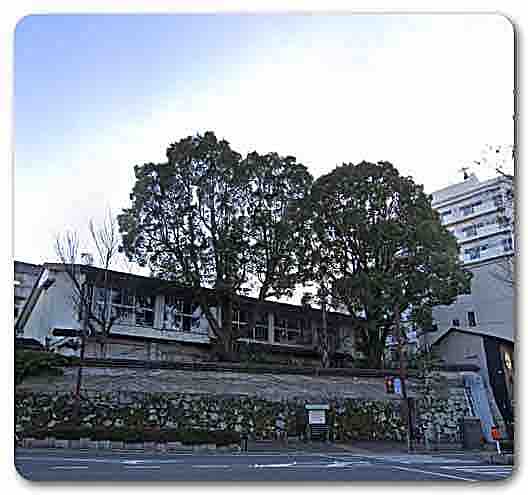 20日,大木の大規模な剪定作業が行われます。 内山下小学校体育館の北側に半世紀を超えて成長した大木があります。この大木の根は石垣に近く,地上からの高さが20メートル程度と思われるのですが,その大木の剪定作業が,クレーン車と産廃運搬トラックと作業員たちにより実施されています。