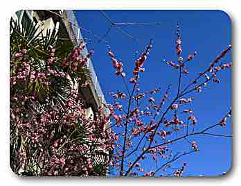 内山下水之手の河津桜がようやく咲き始めている模様です。深柢ガーデンの梅が咲き始めているのも見えます。