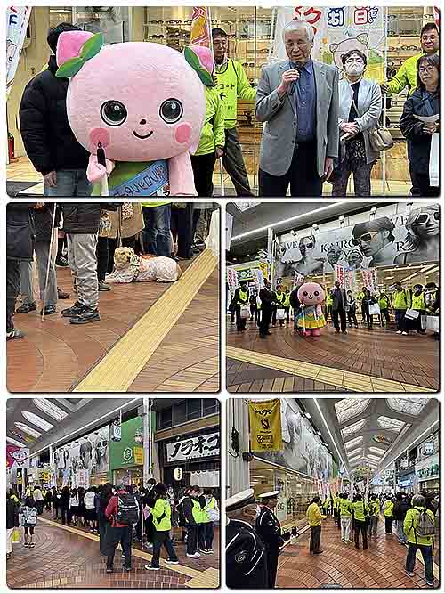 参加者のみなさんは,表町商店街からJR岡山駅まで徒歩で移動して啓蒙活動を行いました。