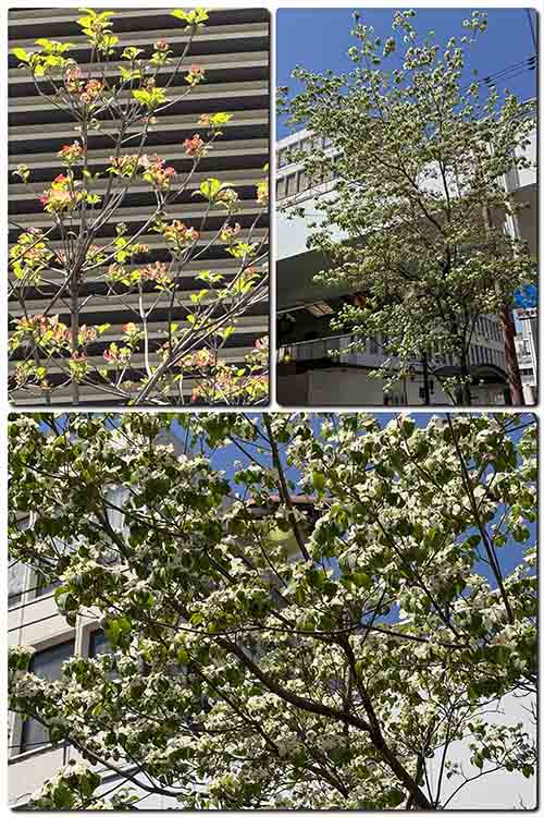 2026/04/11 県庁通りのハナミズキ 花弁が開き始める