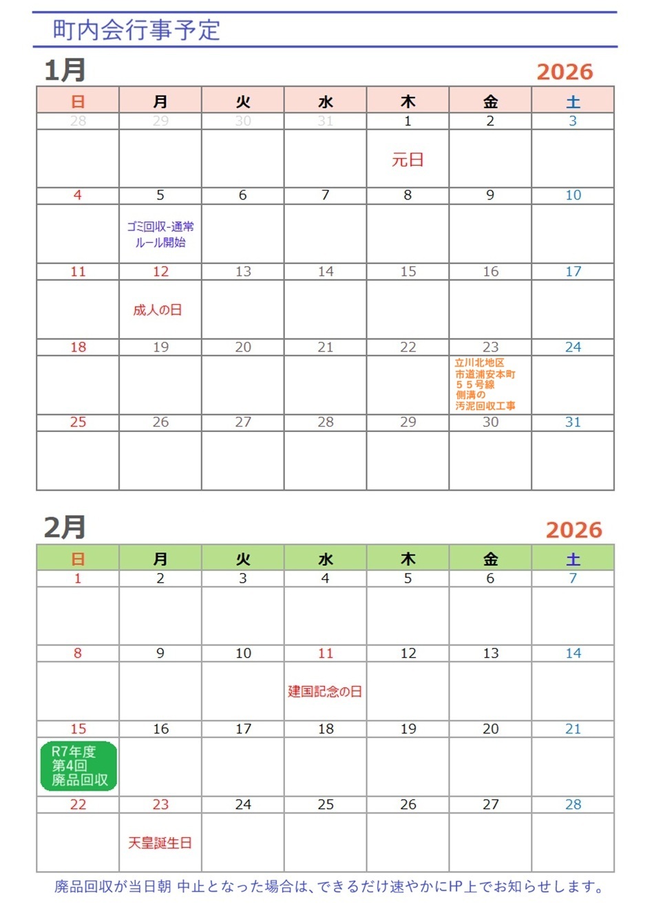 町内会行事カレンダー