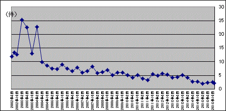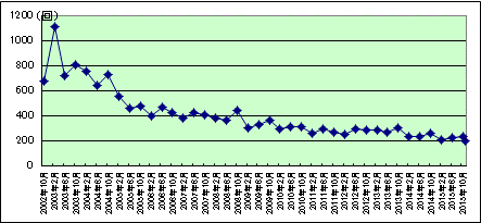 | 1町内会当り 電子掲示板の月間書き込み数推移 | ||||