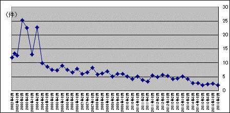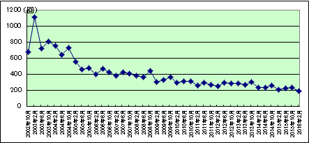 | 1町内会当り 電子掲示板の月間書き込み数推移 | ||||