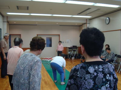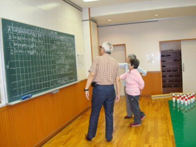 5人が投球して残ってしまつたピンの数が少ない方が勝ちというゲームです。