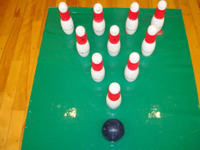 はじめてのスマイルボーリングにに挑戦しました。通常のボウリングは倒したピンの数で競いますが、このゲームは