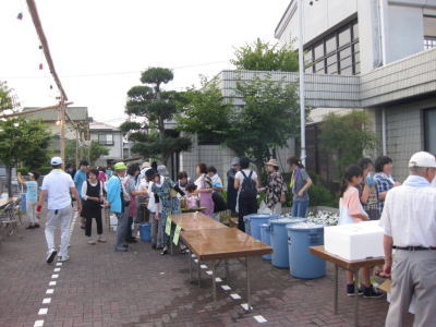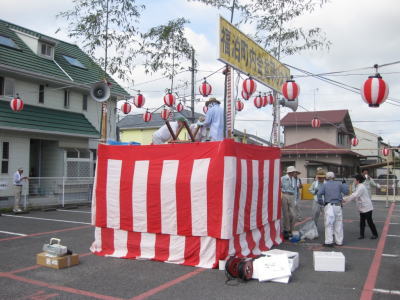 今年は晴天の中福泊町内会「盆踊り大会」が例年になく305世帯の参加で開催され売店の開始と同時に列が出来、早々に