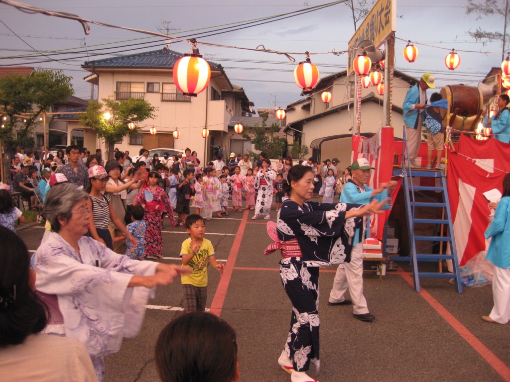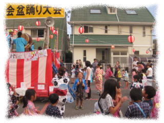 浴衣姿で盆踊り楽しい笑顔があふれます。