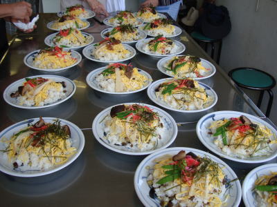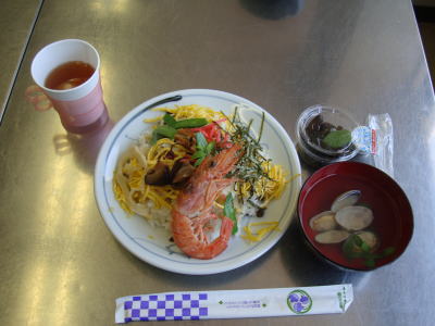 (寿 司) お米、筍、椎茸、玉子、えび、穴子、山椒