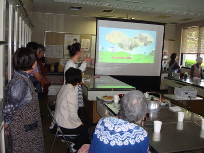 美味しくお寿司を頂いた後に、坪田さん製作のオリジナルDVDをプロジェクターで歌詞を映して