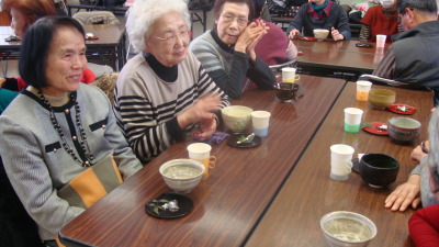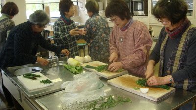 一階の調理室ではボランテァの方が七草粥の仕込みの