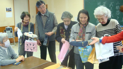 毎週木曜日に公会堂で開かれている「紬の会」に集まっている方達の手作りティッシュカバーです心のこもったプレゼントです。