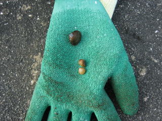 | シジミの数は昨年と変わらんかったが、小さい赤子がいて来年が楽しみです。 | ザクロの実がおいしそうです。 | 「はーいこんなに集めました。」 | こんなに綺麗になりました。 |