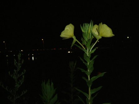 明るい黄色の花弁、夜の待宵草(8/01)