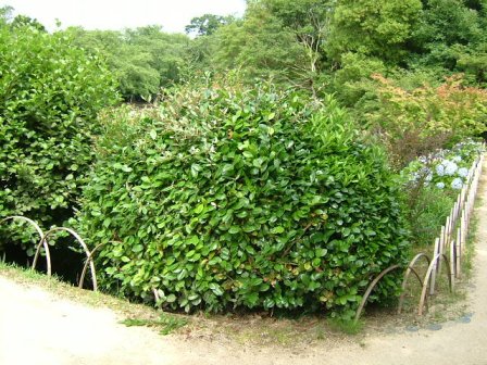 右:ナワシログミがマサキなど他の潅木に埋めこまれている