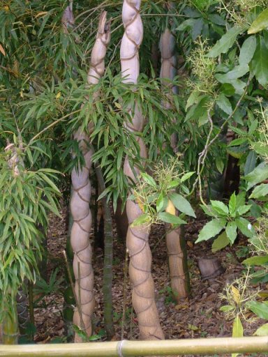 | 亀甲竹(キッコウチク) | Buddhist-facing bamboo | Phyllostachys pubescens cv. Heterocycla | 花交池西の茂み |