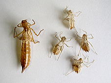 | ギンヤンマとタイリクアカネの羽化殻 | 羽化していたタイリクアカネ |