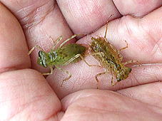 | 先生も夢中、ヤゴがいるかなあ? | 救い出されたたくさんのタイリクアカネのヤゴ |