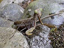 ハラビロカマキリ普通は緑色ですがいろがわりです (カマキリ科) | |
