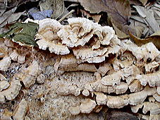 | カイガラタケのように見えますが、実はアリの巣にキノコがはえています 初めて見ました。 (後楽園にて) |