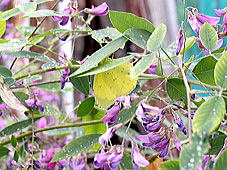 キチョウがハギの葉の下で 雨宿りをしていました (シロチョウ科) |