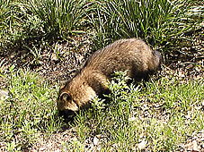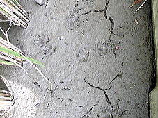 | たんぼについていたタヌキの足跡 | 逃げようともしないタヌキでした (県自然保護センターにて) |