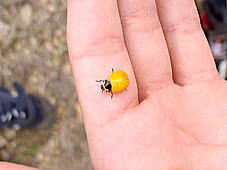 | 旭川の岸辺で見られた生き物 他にも色々な生き物が観察出来ました。コフキトンボのヤゴ、コシボソヤンマのヤゴ、イトトンボのヤゴ、テントウムシの仲間やジャコウアゲハ、ツマキチョウ、ベニシジミ、ヒメウラナミジャノメ、キリギリスの幼生などを見ることが出来ました。 |