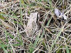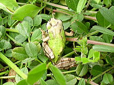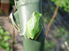 アマガエルは忍者? アマガエルはまわりの色に合わせて色々な色に変身します。まるで忍者のようです。薄茶色、緑色、土色、迷彩色など色々と変わるのです。不思議ですね。 |