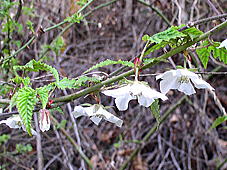山野で見られるイチゴ 山や野原には色々なイチゴがあります。ナワシロイチゴ、オヘビイチゴ、フユイチゴ、クサイチゴ、ナガバモミジイチゴなどです。4月にはクサイチゴとナガバモミジイチゴの花がが山ぎわなどに咲いています。どちらも甘くてとても美味しいイチゴです。 |
