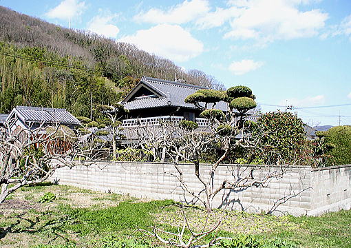 最近では珍しいなまこ壁の家です。昔ながらの古い家ですが、じつにきれいに保たれています。また、ブロック塀の外の、柿の根本にはたくさんのフキノトウが咲いています。昔の風景が保たれている良い景色ですね。