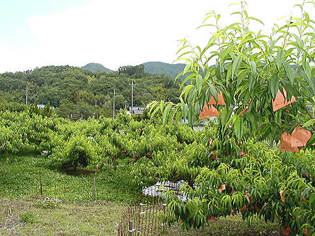 桃源郷と呼ばれる原船山の桃畑です。昔、牟佐大久保でも桃を作っていました。なつかしいような風景です。