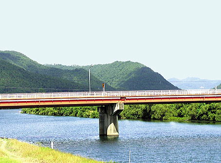 旭川にかかっている中原橋です。赤い色と背後の緑のバランスがとれていて、ゆったりとした水の流れがあり、私にはとても気持ちが安らぐ場所です。