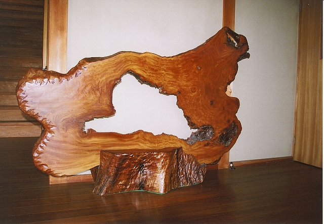 木目を生かした作品は、素朴ながら格調高い味わいを漂わせる芸術品。