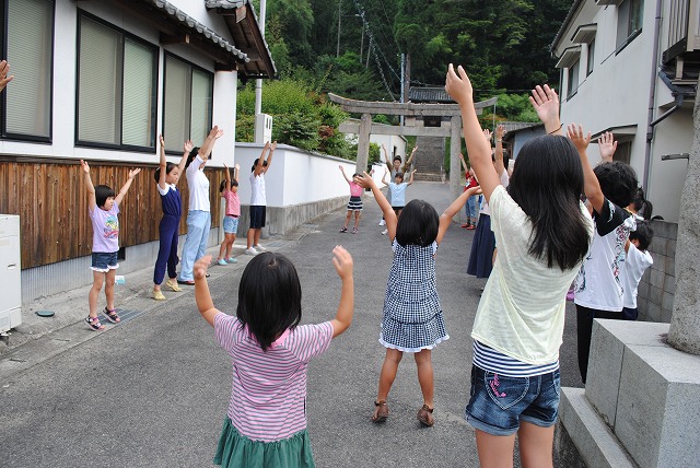 | みんな一生懸命ですね。 大きく手が伸びています。 ラジオ体操から気持ちの良い一日を、 規則正しい夏休みを過ごしてくださいね。 |