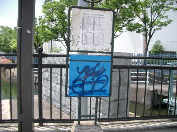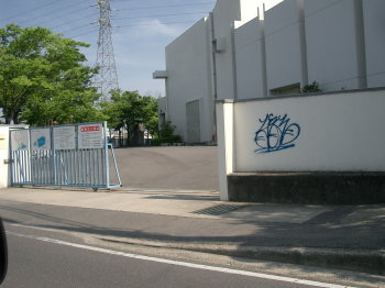 ![]() 平井排水センター玄関右、コンクリート塀に青色ペンキでイニシャル様の落書きが目撃されました。6月10日頃から12日にかけての犯行 |