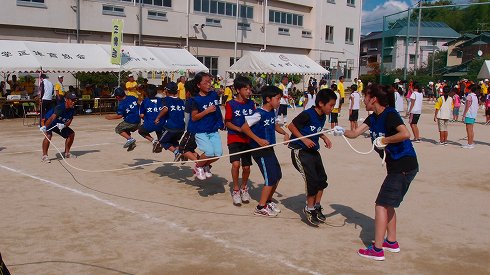 | 長なわとび 得点種目 小学生男・女8名と、大人2名 | ||