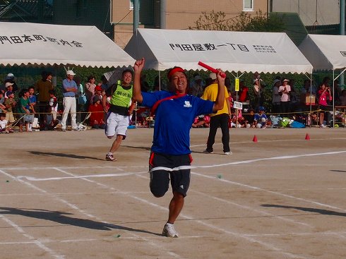 門田文化町チームは1位でゴール 一般は 森下町チームが1位でゴール |