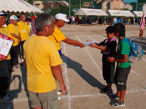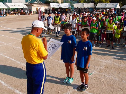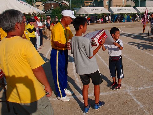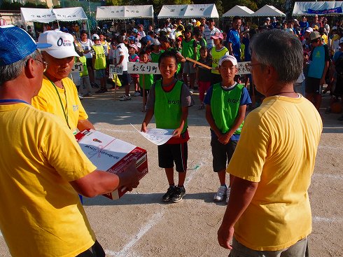| 三勲学区大運動会が秋晴れの9月25日日曜日午前8時30分開会にて三勲小学校で行なわれました。 今年は、綱引きで準決勝まで勝ちのこり町別対抗リレーの小学生が1位になりました。 表彰式では、第四位で表彰され賞状と景品を頂きました。 |