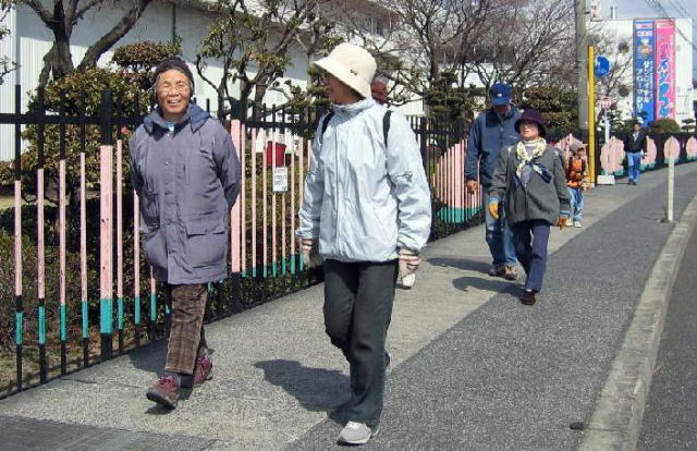 すっかり春めいた今日、老若男女? 計16名が参加し、全員完歩しました。