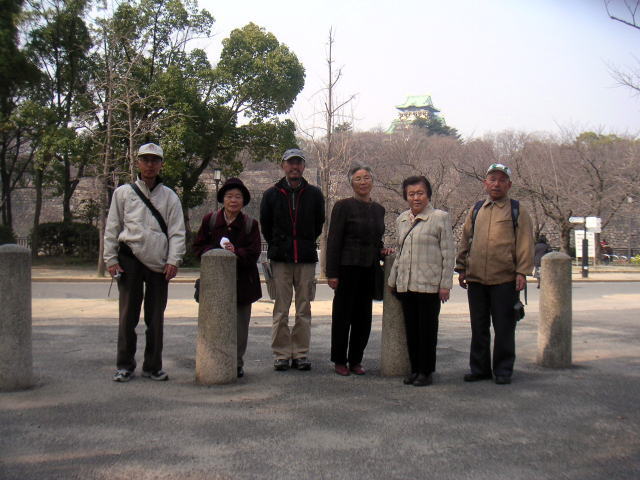大阪城をバックに 参加者全員 (6人)で、 パチリ!