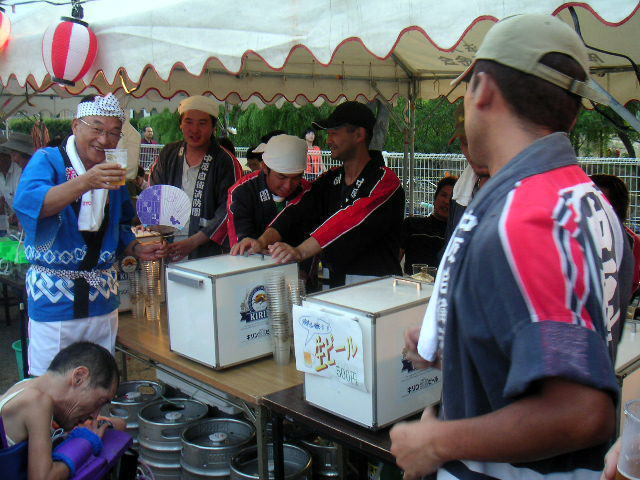 中原地区の自衛消防団の方々は、恒例の生ビール販売で 頑張っていました。