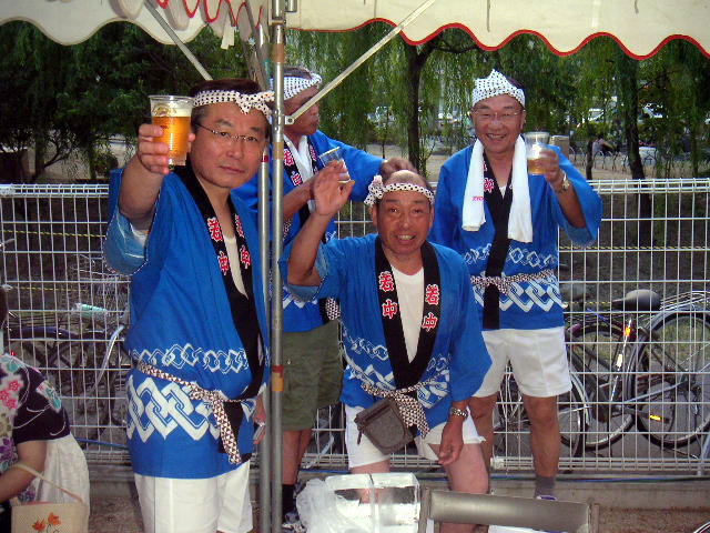 中原地区の自衛消防団の方々も 夜店(生ビール)で 汗をながしながら 頑張っていました。