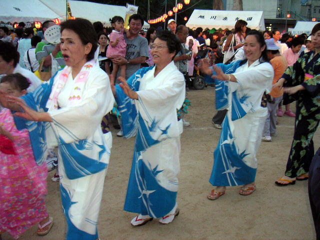 この日のために、盆踊りを教えて下さいました旭川荘のスタッフの方々と。
